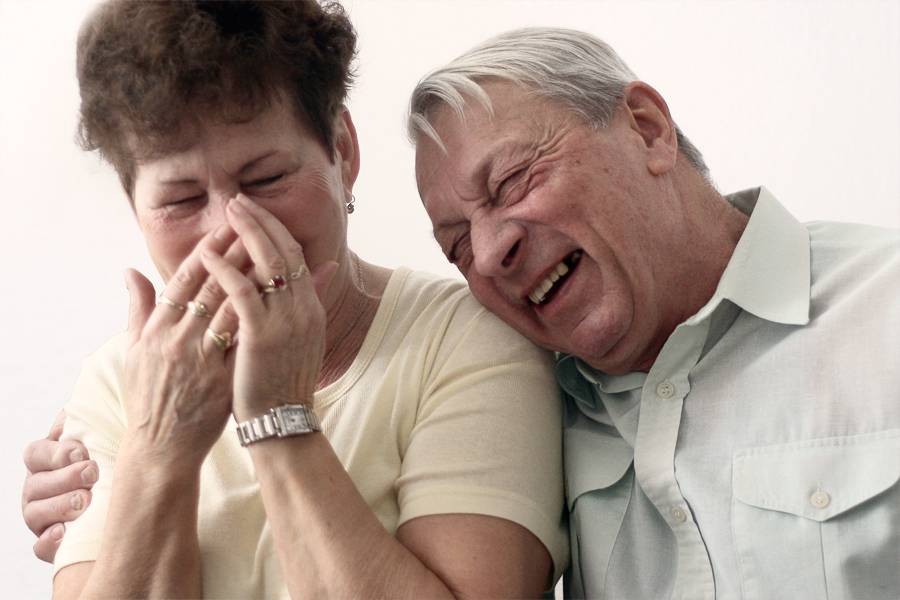 Babička se začala smát, když jsem jí řekla, ať se na dědu trochu víc nalepí. A pak už nemohla přestat :) A to rozesmálo dědu i mě. Jsou úžasní.