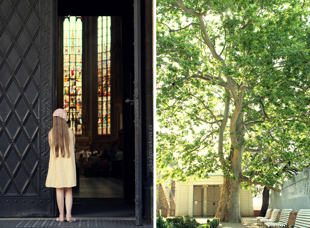 Většinu fotek, které jsou dole, jsem vyfotila během procházky po Petrově. Asi moje nejoblíbenější je hned ta první, kde holčička nesměle nakukuje do kostela. Sice jsem si během focení připadala trochu jako pedofil, ale tam moc se mi líbila symbolika celého výjevu, že jsem prostě neodolala.