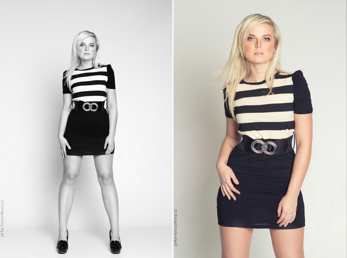 Když byla Petra hotová s líčením, pustily jsme se do focení. Mirce jsem na začátku dala krátké “školení”, aby věděla, o co se spolu během focení budeme snažit. A poté jsme se pustily do focení samotného. Vždycky jsem říkala, co přesně dělat, jak se má Mirka tvářit, kam si položit ruce, jak se na mě natočit, … aby se nestalo, že přede mnou bude jen bezradně stát a nevědět, co dělat. Kdyby něco takového chtěla, nemusela by chodit k profesionálnímu fotografovi.