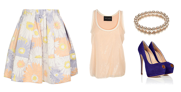 Skvělým modelem na focení by mohla být například květovaná áčková sukně jako na obrázku dole. Schválně jsem vybrala světlou optimistickou barevnou paletu, protože to podle mě k jaru prostě patří.