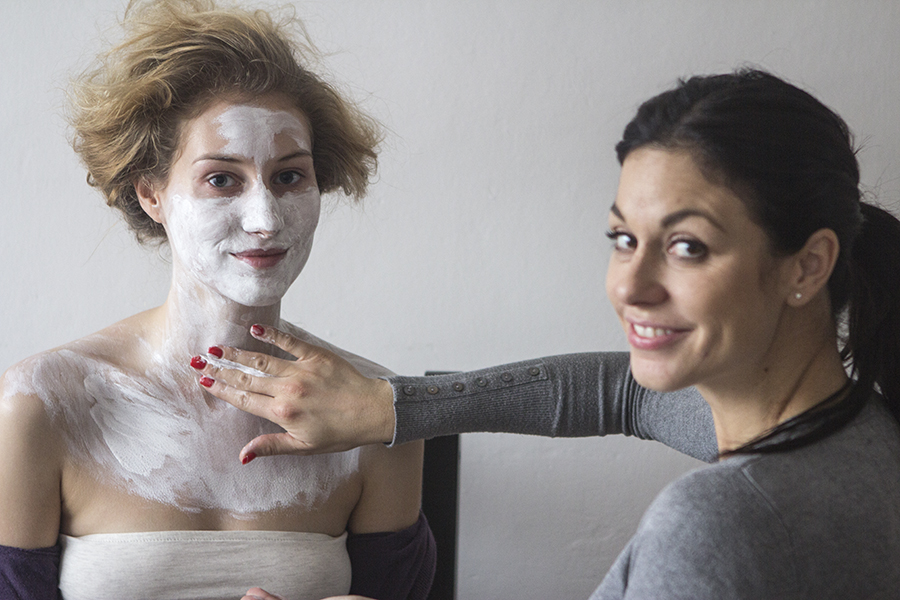A tady je jedna pracovní fotka na závěr. Nanést na Míšu všechnu bílou barvu byla docela dřina. Ale ne taková jako všechno to pak smýt. Moc děkuju za ochotu podstoupit to!